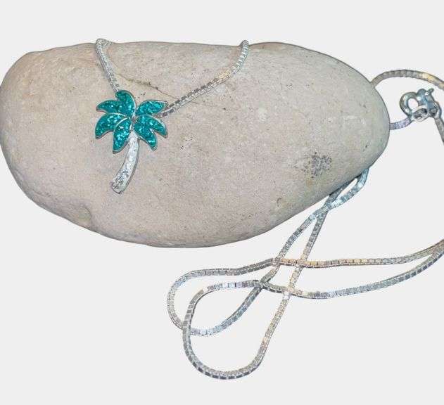 Palm tree, Sterling silver pendant on Sterling silver box chain. Both marked 925