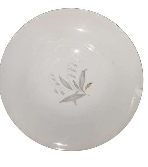 Kaysons Fine China set in Golden Rhapsody. Made in Japan. Set includes 15 dinner plates, 7 soup bowls, 12 dessert bowls, 19 dessert plates, 14 saucers and 8 teacups. Some chips present.