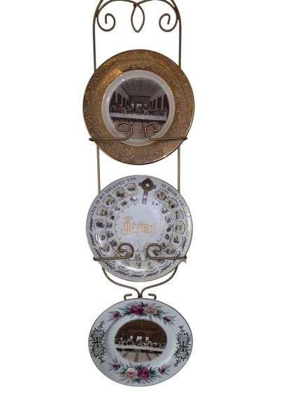 Plates depicting The Last Supper and different scenes from life of Jesus. One plate marked as fine china 22kt gold.