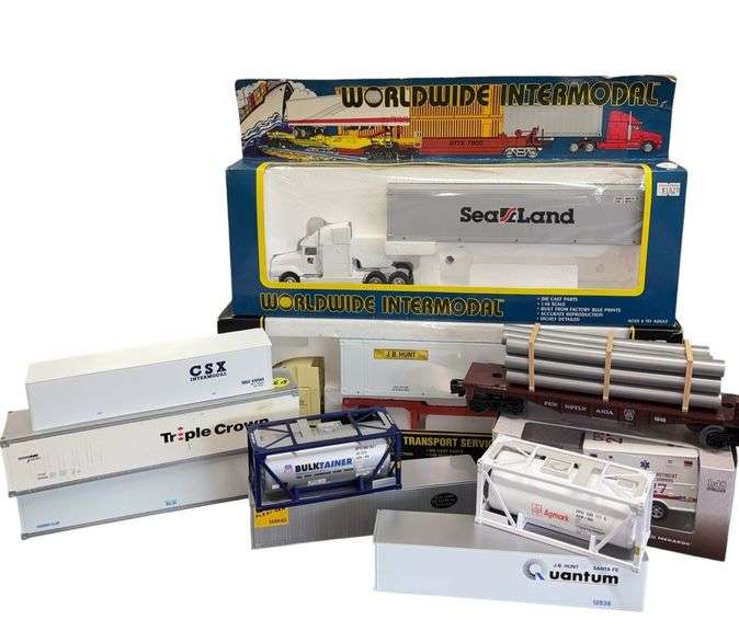 J.B. Hunt and worldwide international semis in original packaging. Variety of containers, Chicago fire department ambulance in original boxes and more.