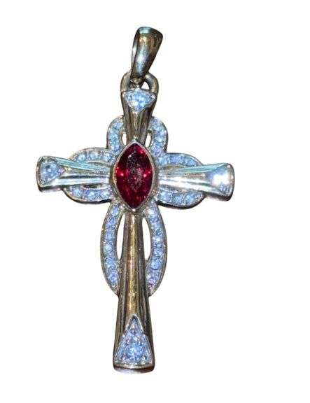 LOT 90 - Camrose & Kross JBK Jacqueline Kennedy Simulated Ruby Cross Pendant