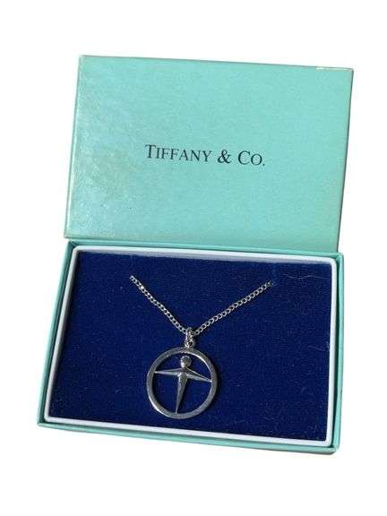 LOT 92 - Tiffany & Co Manpower Unity Sterling Pendant & Chain w/ Box