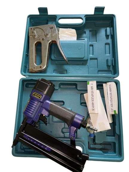 Central Pneumatic 975224 stapler gun and a hand stapler. Functionality unknown.