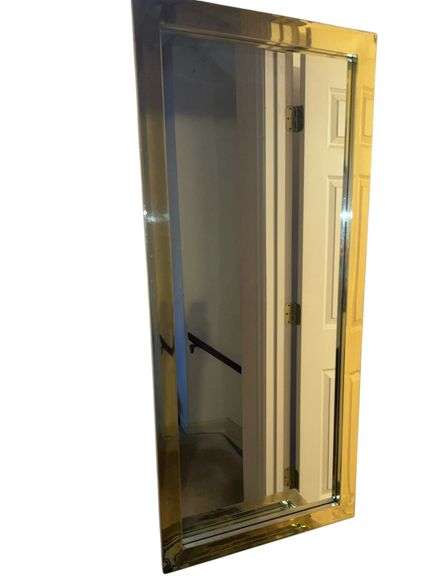 Brass framed wall mirror. Some dents to frame present. Located on second floor.