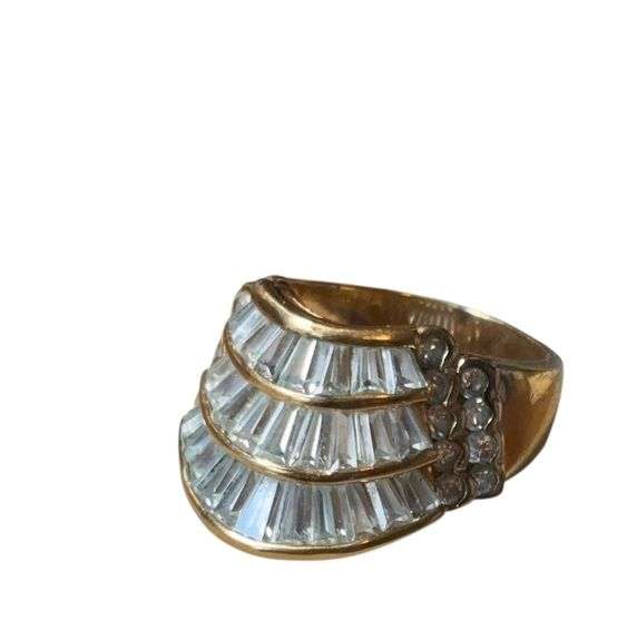 LOT 192 - Sterling Silver Gold Plate Cluster CZ Ring