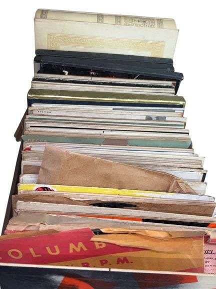 Box full of Bob Glendon, including singles Christmas down in Dixie and good old Santa Claus. Multiple copies. Along with a variety of singles. Records were not removed from sleeves for inspection.
