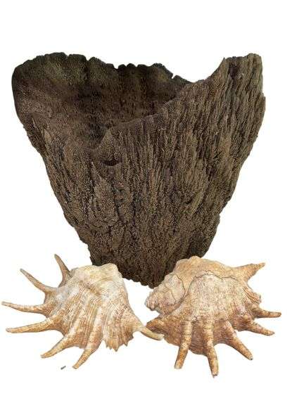 LOT 108 - Giant Sea Sponge and Conch Shells