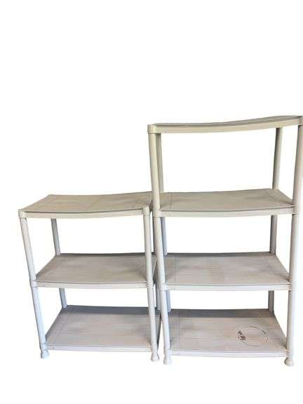 Two plastic shelves, 2 shelf and 3 shelf.