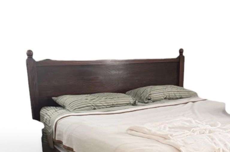 Solid wood headboard with Restonic comfortcare Penn Supporting Dreams mattress (if so desired). Includes headboard, rails, and mattress. Located on first floor.