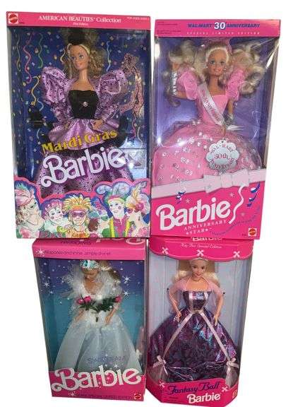 Star Dream, Fantasy Ball, Barbie, Mardi Gras and Walmart 30th anniversary Barbie. All new in box.