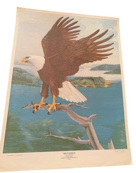 Entitled “Bald Eagle”. Print number 1400 of 2000 and signed lower right. Limited edition trooper Island plate one bald eagle print. Damage on corners.
