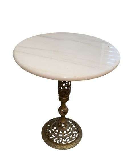 LOT 61 - Vintage Pierced Brass Pedestal Side Table With Marble Top